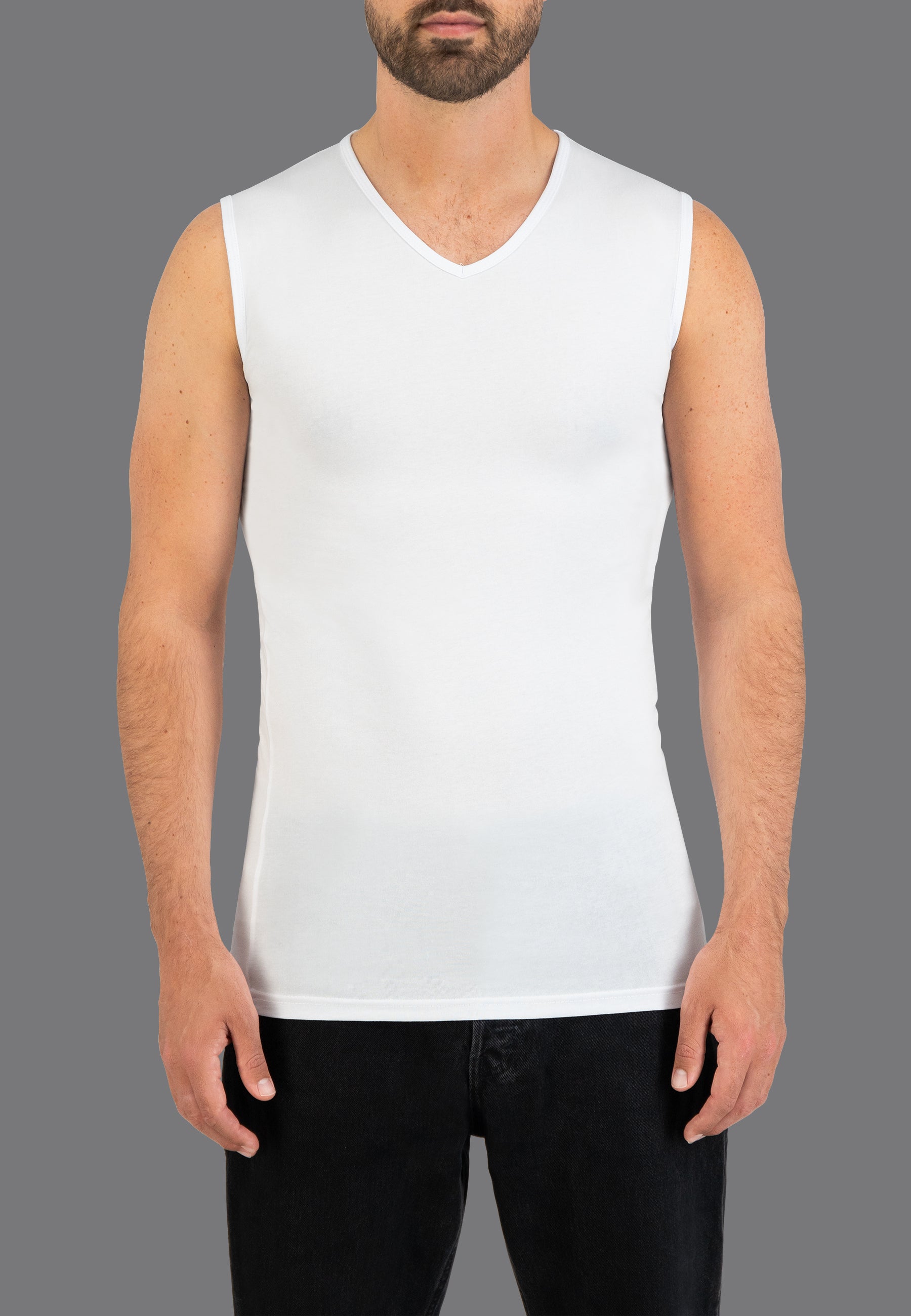 Mouwloos T-shirt in stretch kwaliteit. Dit T-shirt zonder mouwen is zeer geschikt voor gelegenheden waarbij de mouwen niet zichtbaar mogen zijn, denk aan bruiloften.